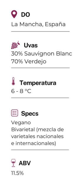 Vino Blanco Toro Bravo es una mezcla de Verdejo, conocido por su carácter frutal y herbáceo, y Sauvignon Blanc, conocido por su acidez y notas cítricas, resulta en un vino vibrante y refrescante.